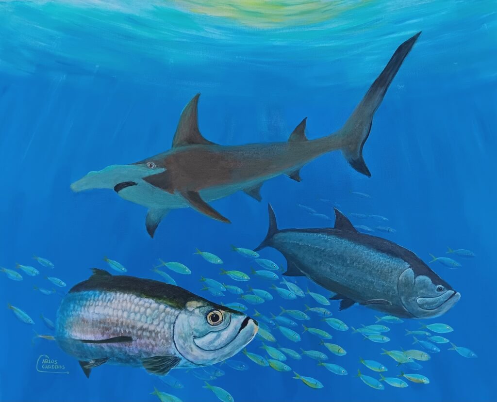 Carlos Cardenas is a Colombian artist based in Clearwater, Florida. His deep connection with marine life, which blossomed during his time in the Caribbean, serves as a central theme in his artwork. Carlos’s paintings beautifully depict native fish, captivating viewers and instilling a sense of appreciation and guardianship for the ocean.