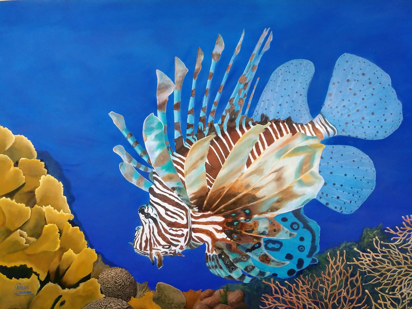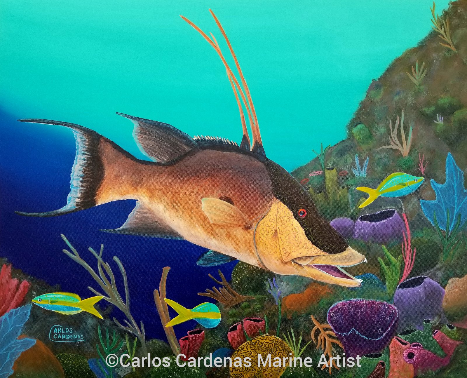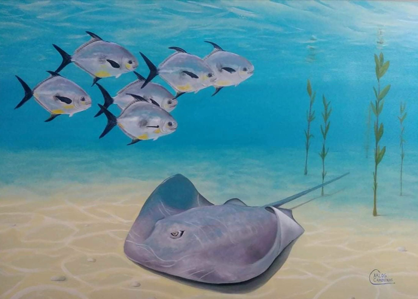 Carlos Cardenas is a Colombian artist based in Clearwater, Florida. His deep connection with marine life, which blossomed during his time in the Caribbean, serves as a central theme in his artwork. Carlos’s paintings beautifully depict native fish, captivating viewers and instilling a sense of appreciation and guardianship for the ocean.