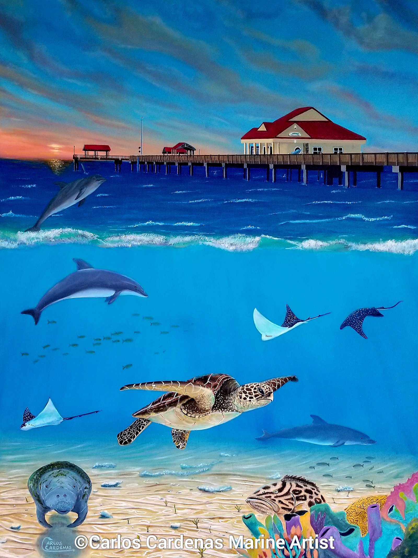 In addition to his artistic endeavors, Carlos actively supports the rescue and research of ocean animals by donating a portion of his artwork to non-profit organizations. Some of his collaborations include Florida Wildlife and Conservation (FWC), Clearwater Marine Aquarium (CMA), MOTE Marine, and Aquarium, among others. Through these partnerships, Carlos contributes to the conservation and preservation efforts that these organizations undertake.