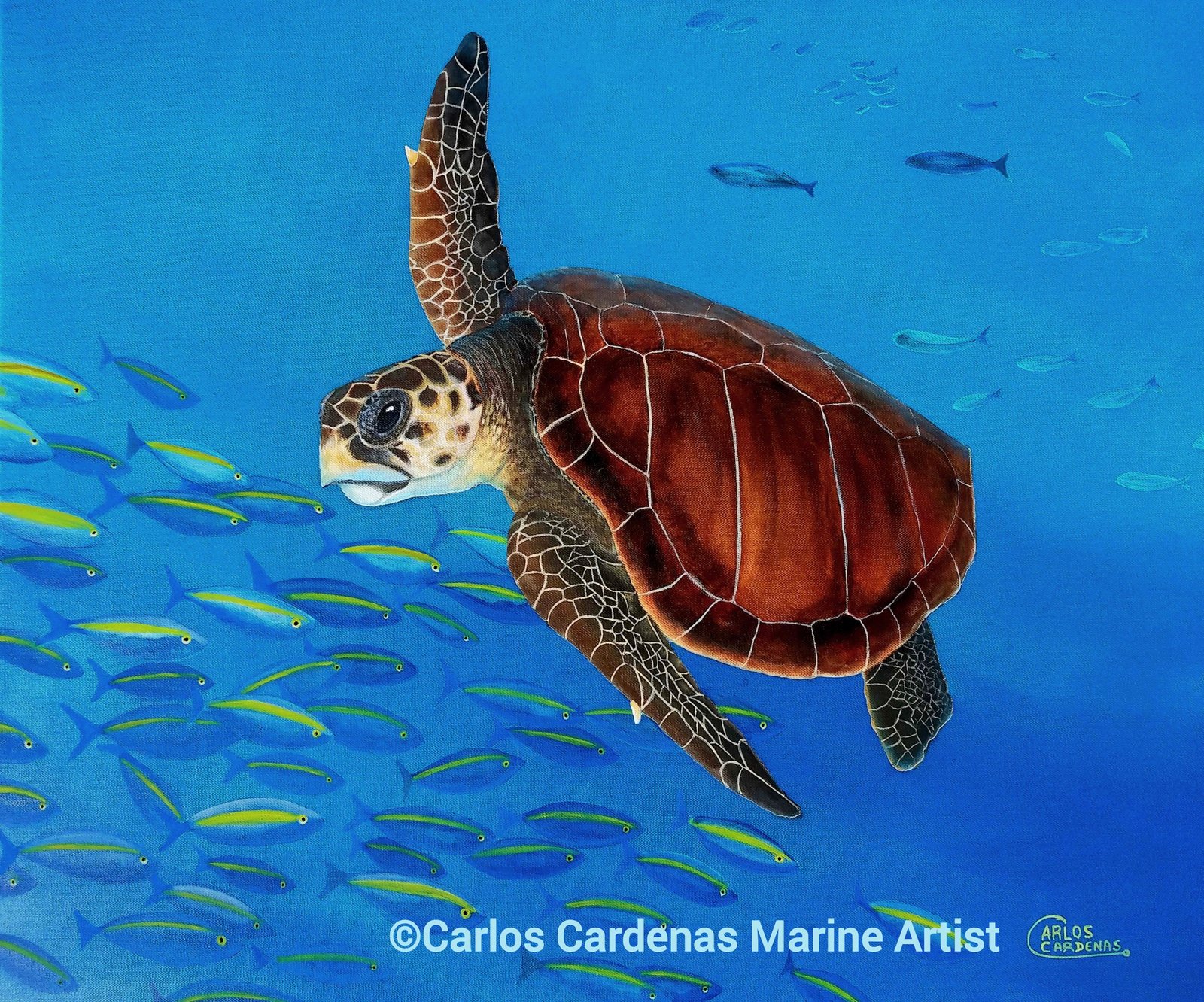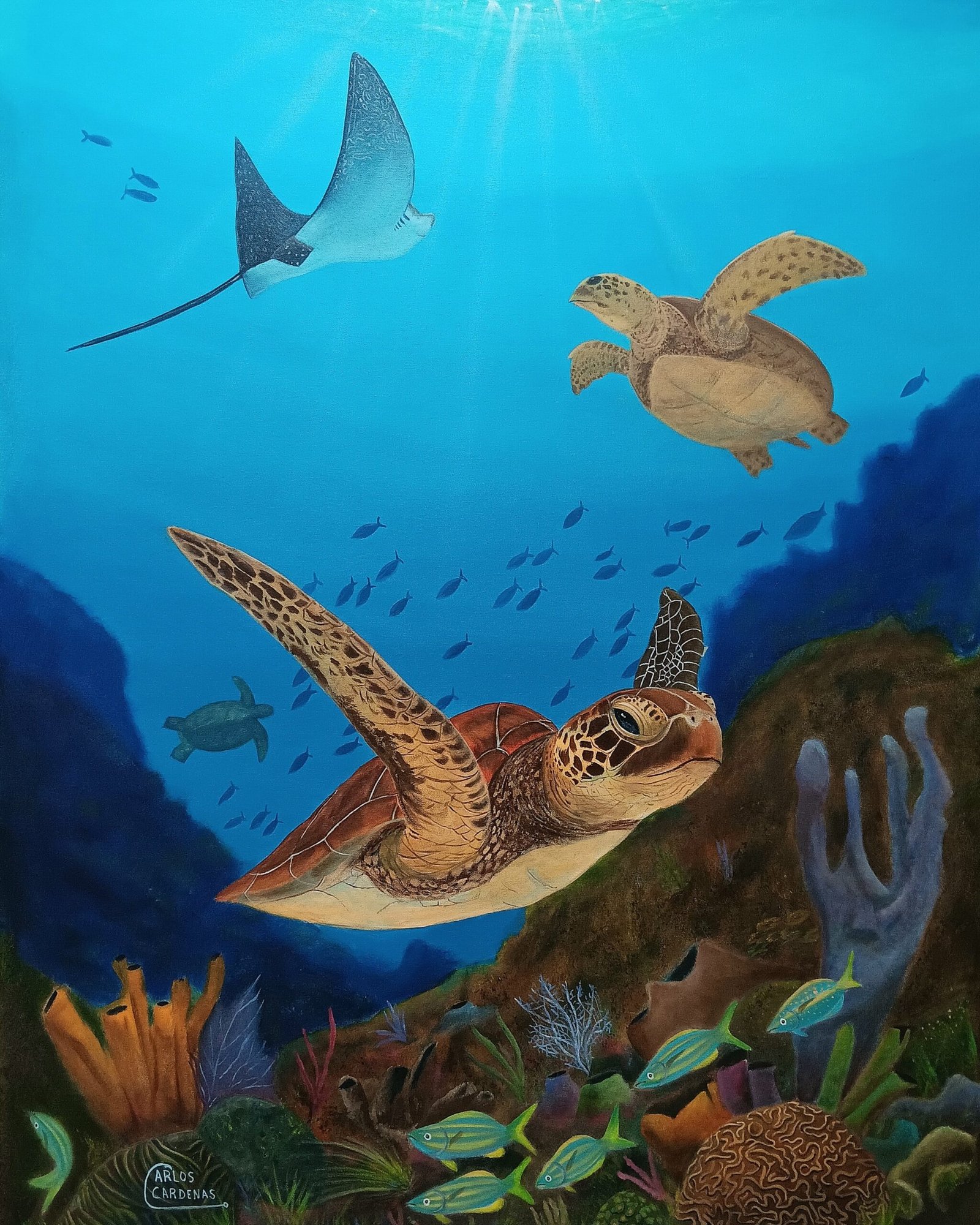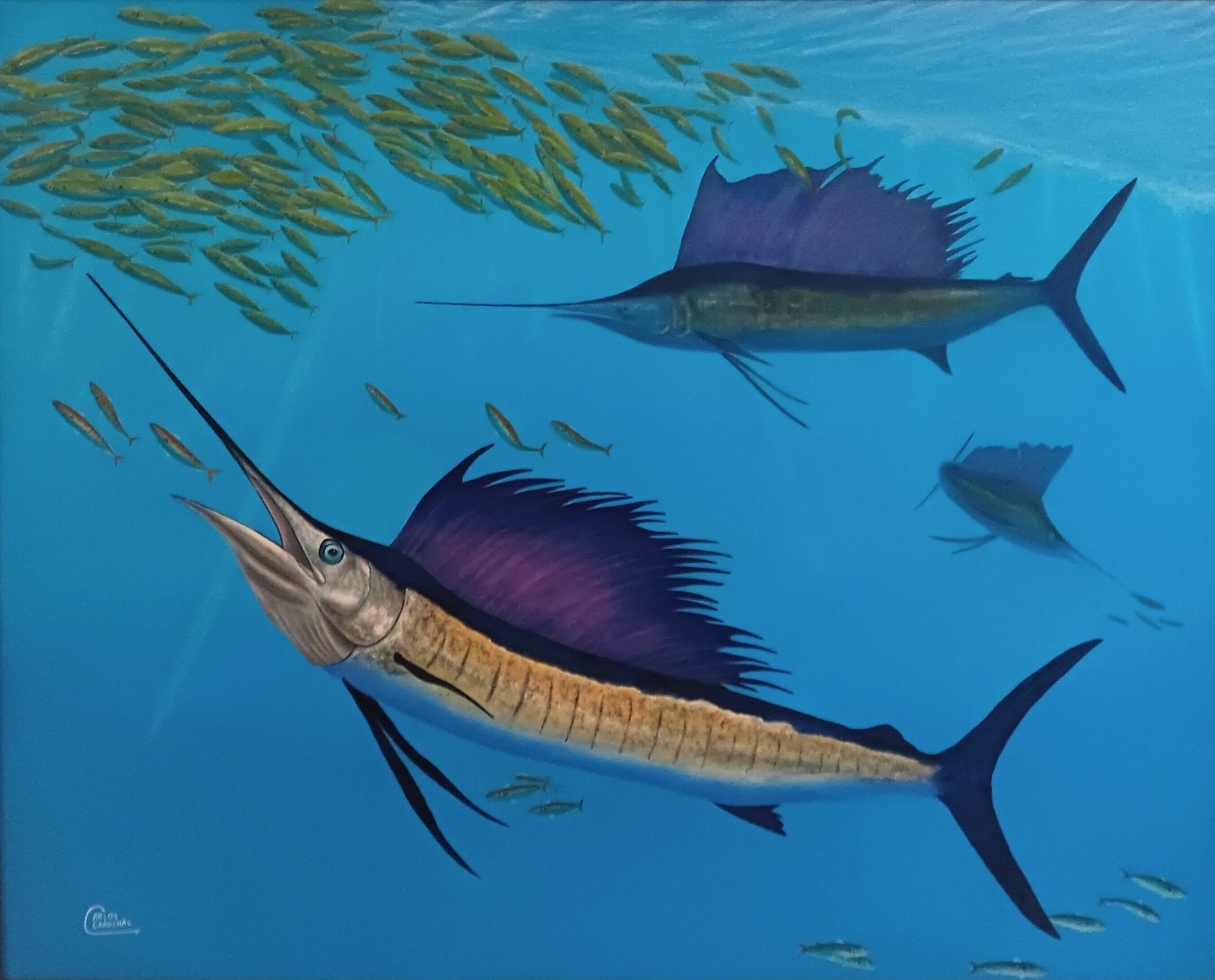 By owning one of Carlos’s paintings, you not only acquire a remarkable piece of art but also contribute to the cause of protecting and preserving ocean animals through his philanthropic efforts.